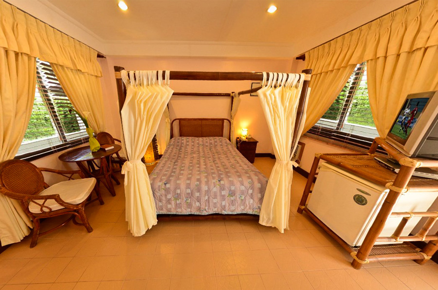 Amenities include hot and cold shower, cable TV, air conditioned room, mini bar, safety box, and telephone.It has 2 bed types which are double and twin beds. Deluxe room is located at the Second Floor and has a veranda, with side beach view.